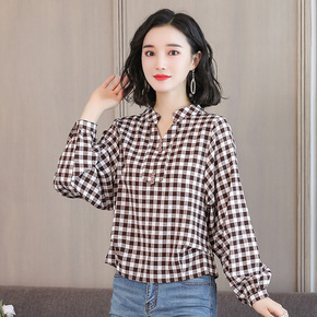 春秋新款棉麻格子衬衫女中年妈妈洋气长袖棉质上衣20...