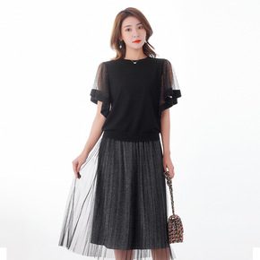 条纹拼接胖MM针织衫2021年秋冬新款大码女式圆领...