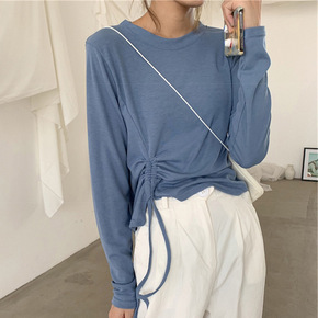 抽绳长袖内搭打底衫t恤女2021年新款秋装洋气设计...