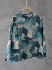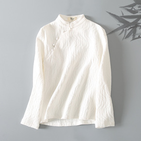 原创春夏苎麻中式立领斜襟盘扣印花衬衫复古国风棉麻上...