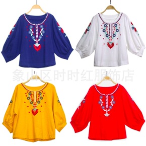 棉麻女装上衣 2021夏季新款绣花民族风上衣棉麻宽...