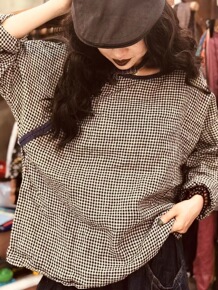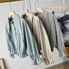 9.16秋装韩版翻领长袖通勤简约格子衬衫上衣...