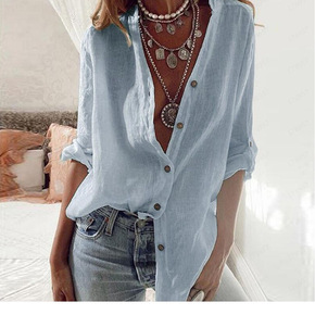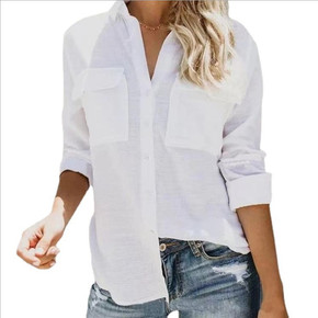 外贸2021欧美翻领纯色打底开衫女士口袋纽扣装饰休...