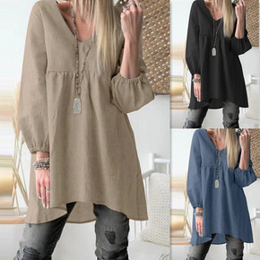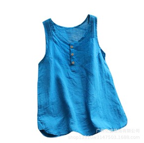 2021亚马逊wish速卖通新款棉麻纽扣门筒百褶纯...