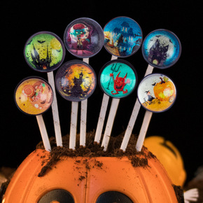 万圣节糖果星空棒棒糖桶装可爱搞怪图案小零食儿童糖果...