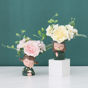 摆件可爱假花仿真花装饰摆设创意花盆卡通儿童房轻奢玫...