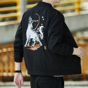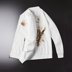 男士外套2021春秋新款加大码韩版潮流刺绣休闲帅气...