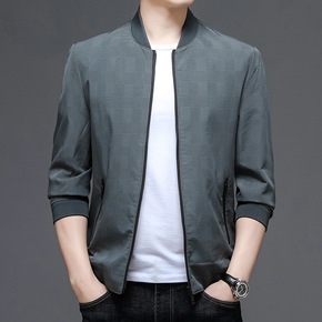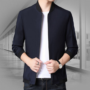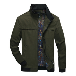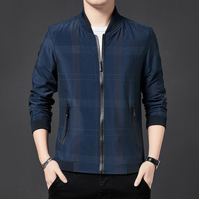 跨境春秋季纯棉夹克男中年男士棒球领休闲茄克中老年立...