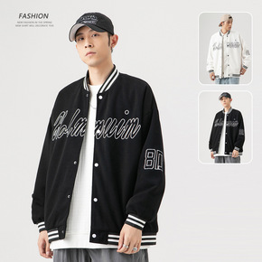 跨境新款春秋季空军飞行夹克男刺绣棒球服时尚纯色大码...