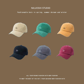 韩版ins纯色做旧破洞鸭舌帽子女春夏网红百搭街头遮...