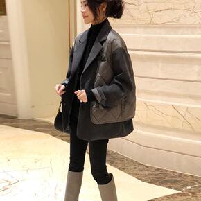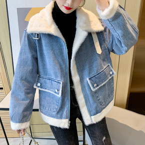 2021年拼接牛仔外套女韩版宽松加厚加绒机车拉链b...