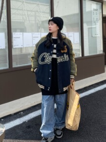 ZHL STUDIO美式复古棒球服夹棉外套男女宽松...