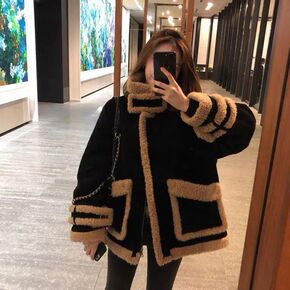羊羔毛外套2021年新款女秋冬加厚夹克复古港味羊羔...