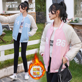 实拍2021冬装韩版学生减龄加绒加厚夹克棒球服棉服...