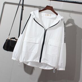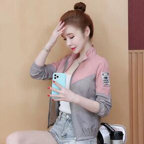 2022年新款衣女夏户外防紫外线撞色薄外套女短款休...