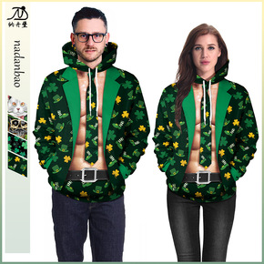 厂家秋冬情侣装潮服棒球服爱尔兰节宽松数码印花情侣连...
