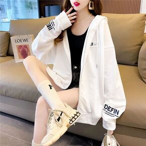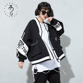 韩版简约刺绣字母长袖棒球服卫衣薄外套中长款大码宽松...