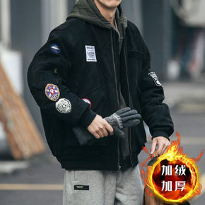 秋冬外套韩版飞行棉服棒球领夹克男青年加厚外套国潮宽...