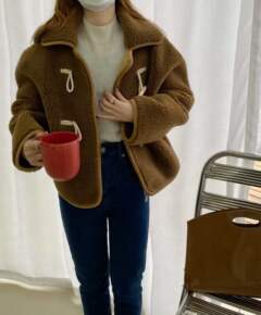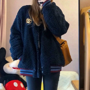 D+源头工厂 甜美百搭棕色翻领牛角扣羊羔毛外套 ...