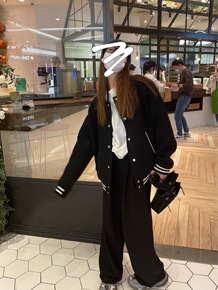 立领单排扣后背字母棒球服 2017秋冬女款黑色短款...