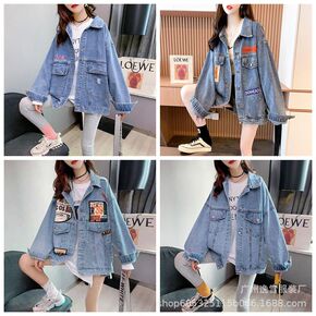 杂款牛仔外套女2021冬季新款韩版宽松刺绣夹克女上...