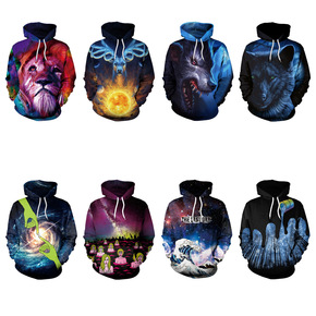 跨境 新品章鱼须数码印花带帽卫衣 宽松情侣装棒球服...