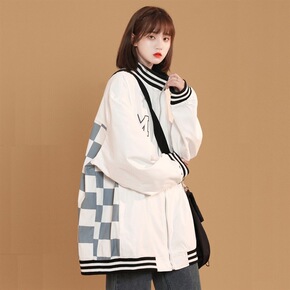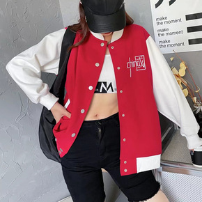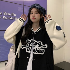 棒球服宽松大码纽扣开衫卫衣女2022新款春秋薄款百...