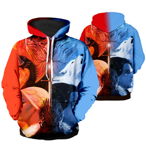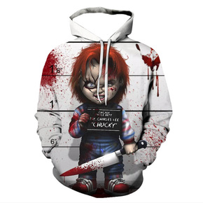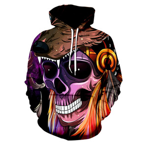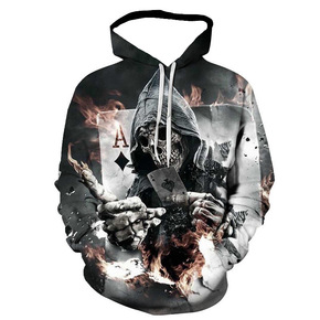 外贸货源骷髅男士圆领套头3d印花情侣装扑克印花带帽...