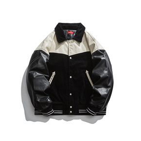2021冬款外贸青年潮流拼色机车棒球棉服男士保暖厚...