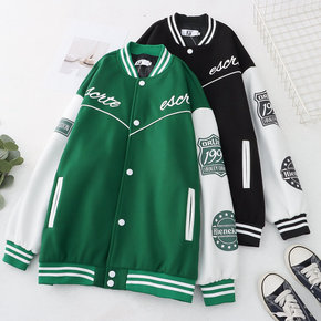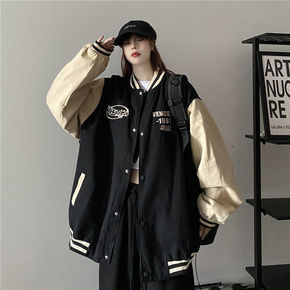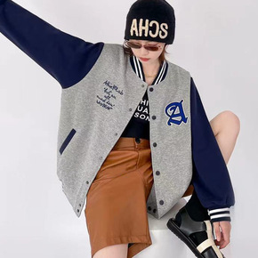 美式棒球服外套女春秋季新款ins潮刺绣撞色学生运动...