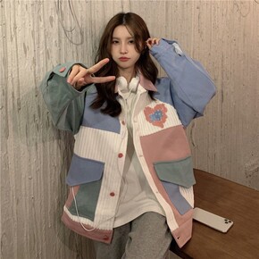 灯芯绒外套女ins春秋新款爱心拼接设计感小众粉色秋...