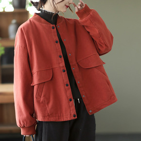 2021秋冬 休闲棒球领加棉开衫外套 宽松百搭小棉...