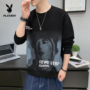 分销代理 花花公子 潮男士韩版修身印花长袖棒球服卫...