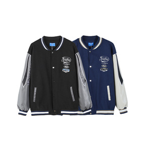 新款皮袖冬季棒球服情侣美式休闲夹克保暖外套复古撞色...