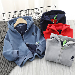 春秋新款男童摇粒绒拉链外套可爱恐龙连帽棒球服儿童休...
