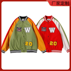 工厂定制拼色棒球服订制男女立领卫衣开衫外套棒球服外...