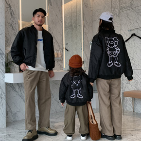 亲子装2021冬新款棒球服一家三四口母子家庭装棉衣...