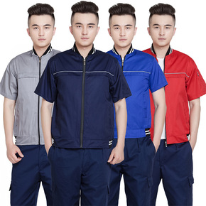 棒球服夏季短袖工作服套装男女劳保服汽修服工厂车间上...