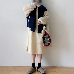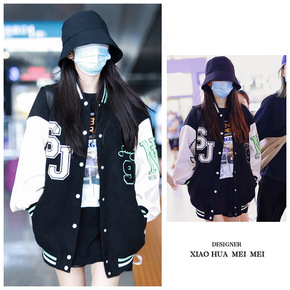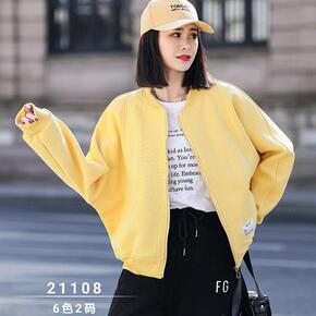 2021秋冬新款圆领棒球女休闲黑色休闲撞色纯色韩版...
