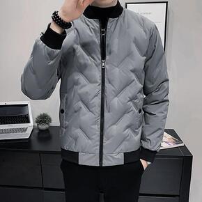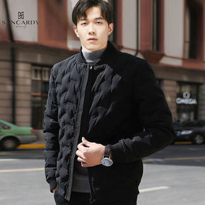 2021秋冬季新款超轻薄羽绒服男短款棒球领夹克中青...