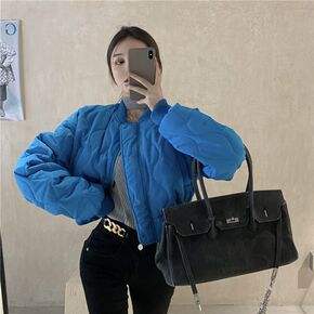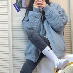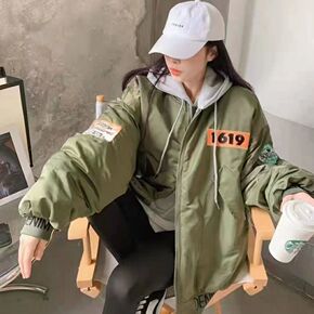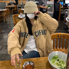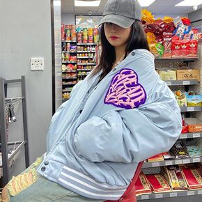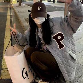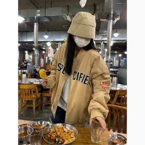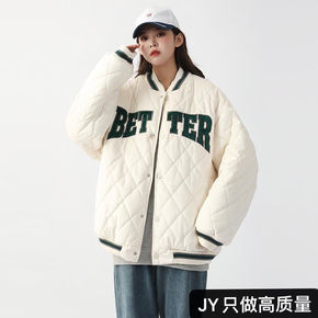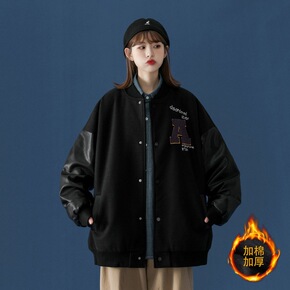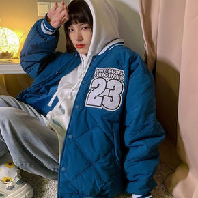 棉服oversize女潮复古日系拼接加厚棒球服外套...