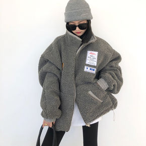 两面穿羊羔毛加厚棉衣棉服女学生冬季ins港风宽松百...