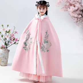 儿童披风斗篷秋冬新款加绒加厚中国风汉服披肩公主古装...