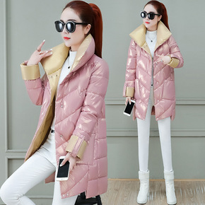 羽绒棉服女冬季中长款气质韩版宽松显瘦百搭加厚亮面棉...