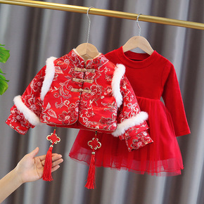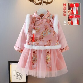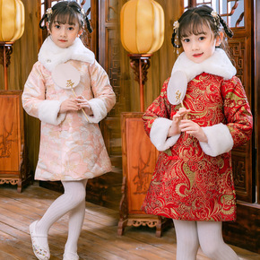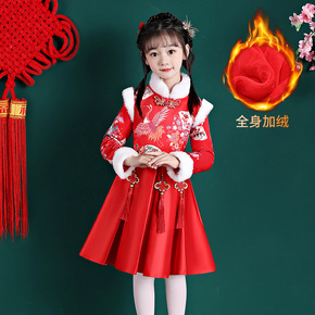 女童汉服冬装过年拜年服加绒风新年装唐装旗袍长袖儿童...