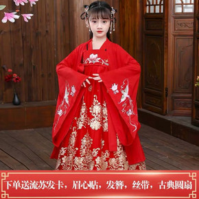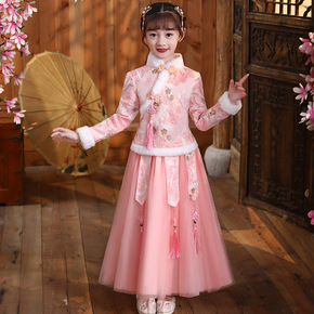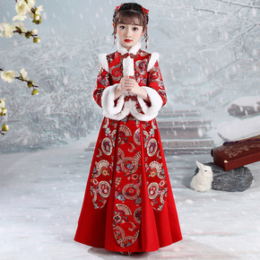 汉服女童秋冬装风儿童唐装冬季旗袍新年装超仙古装加绒...
