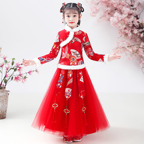 童装女童汉服秋冬装2021新款儿童旗袍连衣裙风唐装...