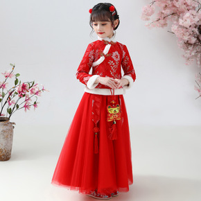 女童汉服秋冬长袖连衣裙风童装儿童唐装冬装旗袍12岁...