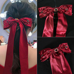人鱼姬珠光缎面蝴蝶结发饰2022新款森系超仙复古网...