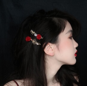 致闺蜜~发饰森系玫瑰橄榄枝叶发夹甜美优雅法式不对称...